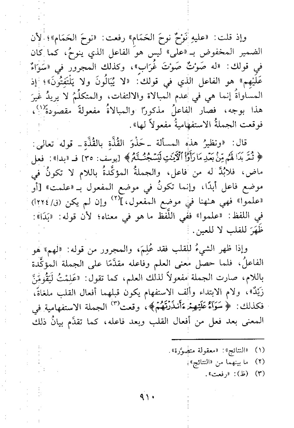 قال ونظير هذه المسألة حذو القذة بالقذه قوله تعالى ثم بدا لهم من بعد ما رأوا الأيات ليسجننه حتى حين فبدا فعل ماض فلا بد له من فاعل والجملة المؤكدة باللام لا تكون في موضع فاعل أبدا وإنما تكون في موضع المفعول ب علمت وأن لم يكن في اللفظ علموا ففي اللفظ ما هو معناه لأن قولهم بدا ظهر للقلب لا للعين
