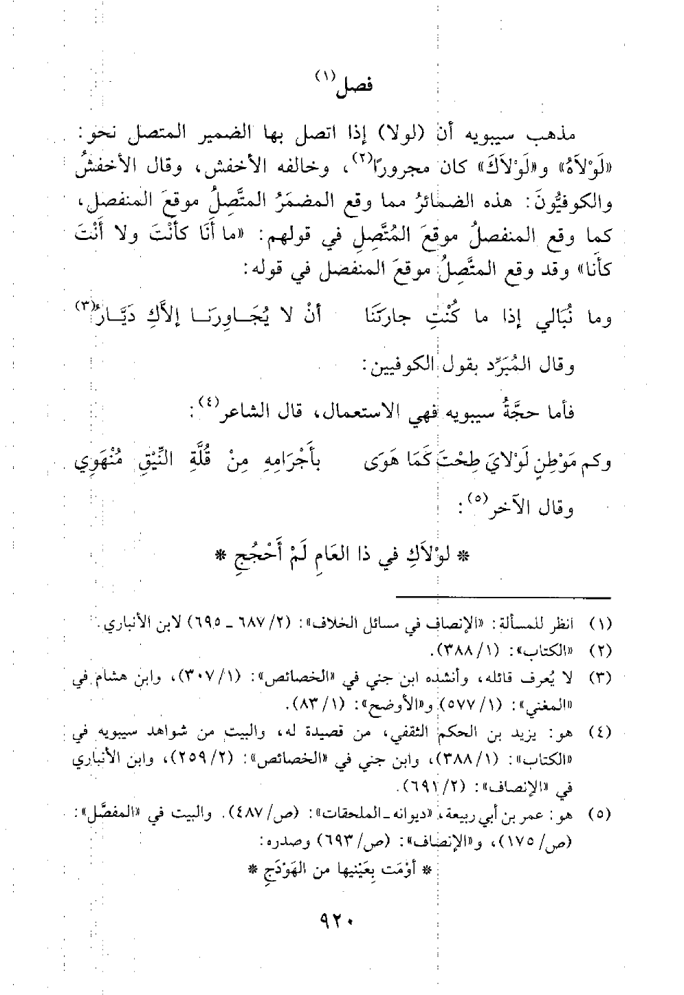 مذهب سيبويه أن لولا إذا اتصل بها الضمير المتصل نحو لولا ه ولولاك كان مجرورا وخالفه الأخفش وقال الأخفش والكوفيون هذه الضمائر مما وقع المضمر المتصل موقع المنفصل كما وقع المنفصل موقع المتصل في قولهم ما أنا كأنت ولا أنت كأنا وقد وقع المتصل موقع المنفصل في قوله