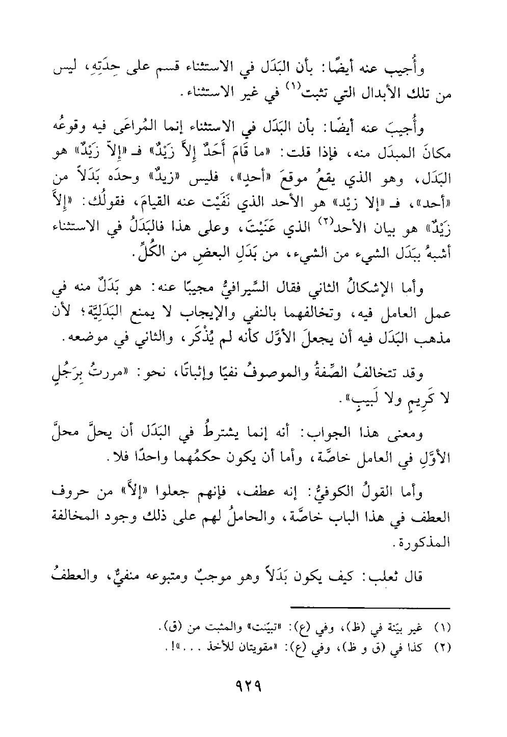 وأما القول الكوفي أنه عطف فإنهم جعلوا إلا من حروف العطف في هذا الباب خاصة والحامل لهم على ذلك وجود المخالفة المذكورة