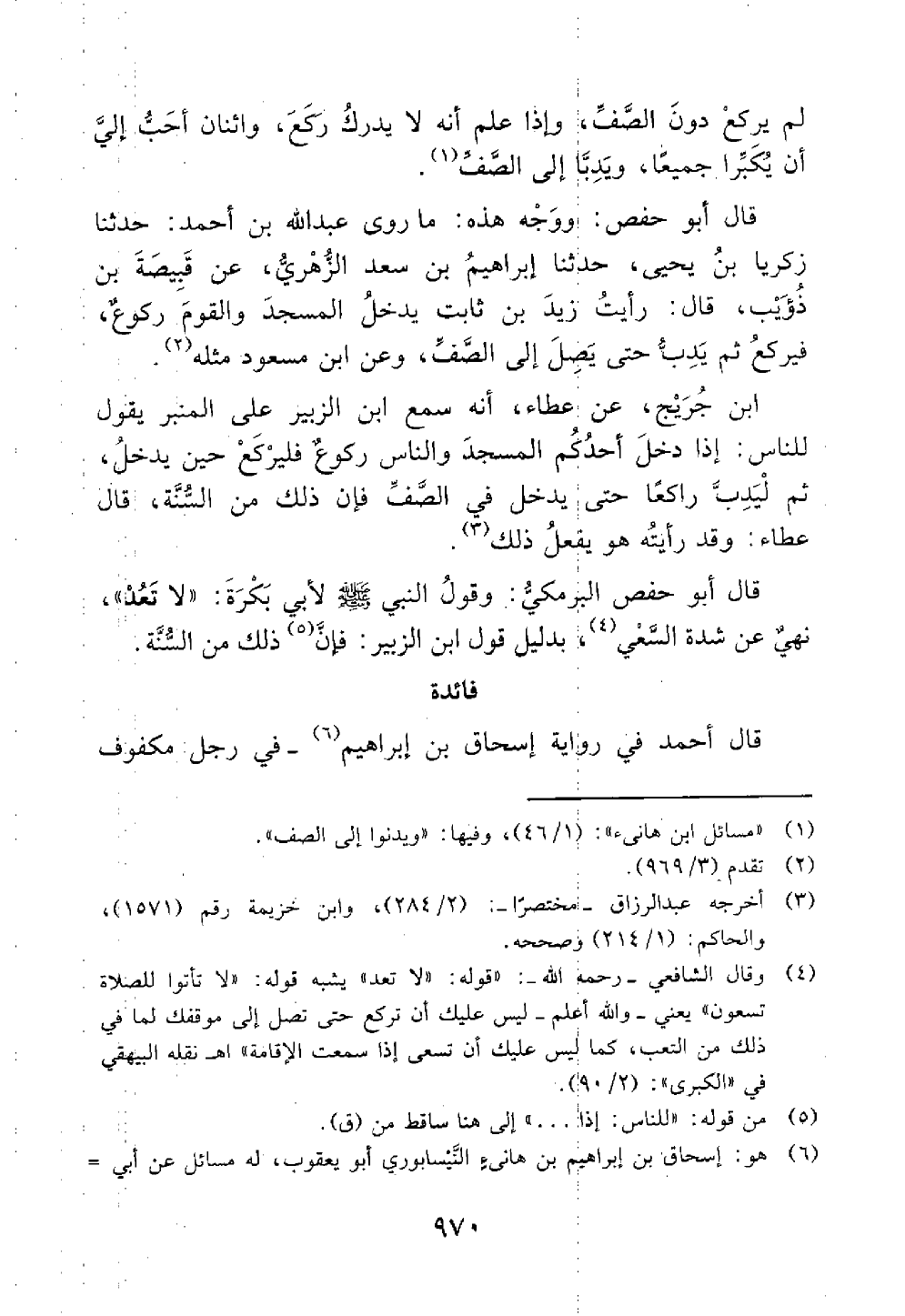 قال أبو حفص ووجه ذلك ما روى عبد الله بن أحمد رحمهما الله تعالى ثنا زكريا بن يحيى ثنا إبراهيم بن سعد الزهري عن قبيصة بن ذؤيب قال رأيت زيد ابن ثابت يدخل المسجد والقوم ركوع فيركع ثم يدب حتى يصل إلى الصف وعن ابن مسعود مثله