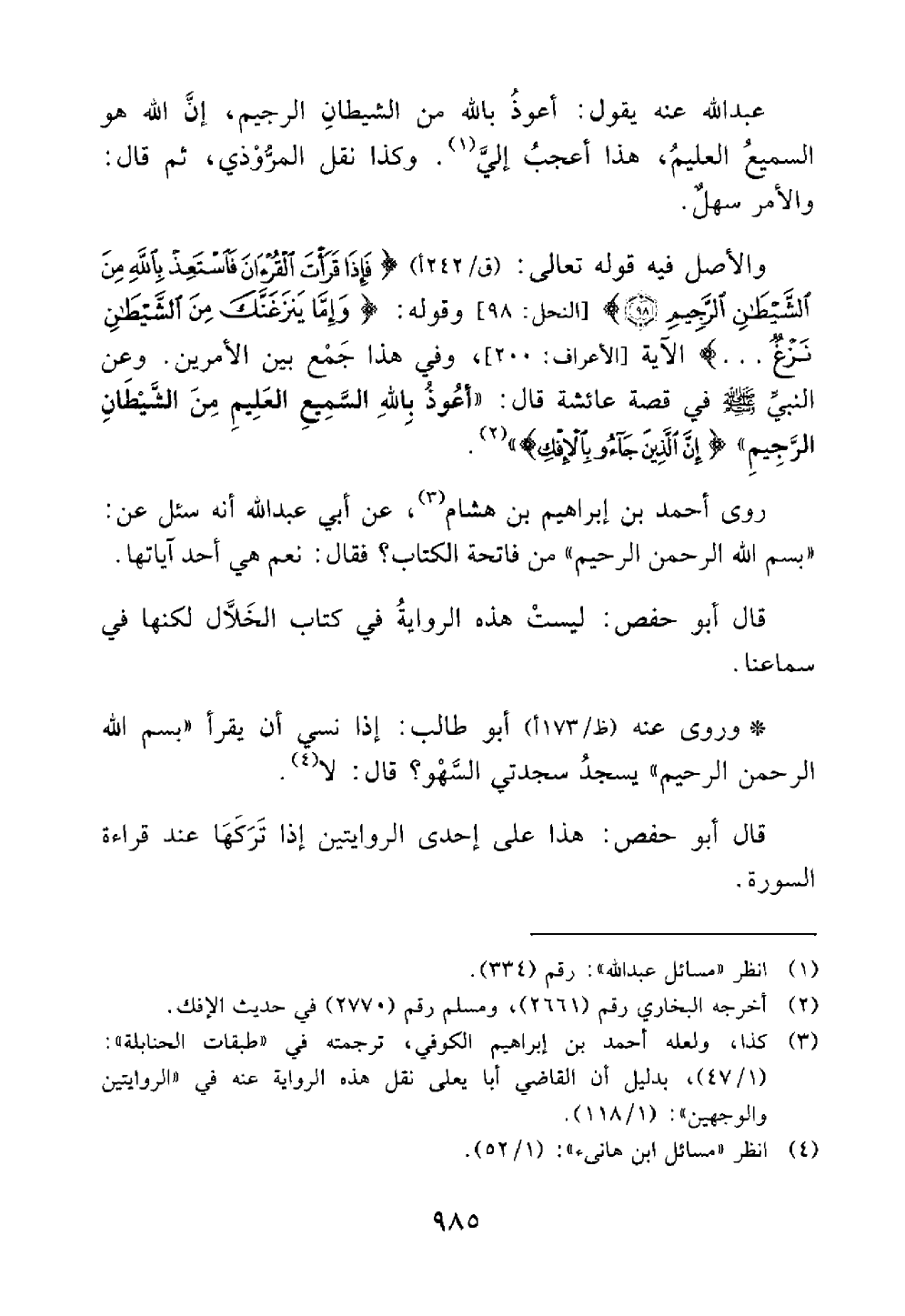 روى أحمد بن إبراهيم بن هشام عن أبي عبد الله أنه سئل عن بسم الله الرحمن الرحيم من فاتحة الكتاب فقال نعم هي إحدى آياتها