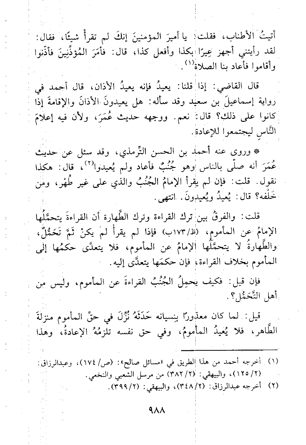 شيئا فقال لقد رأيتني أجهز عبرا بكذا وأفعل كذا قال فأمر المؤذنين فأذنوا وأقاموا فأعاد بنا الصلاة // مرسل // قال القاضي اذا قلنا يعيد فإنه يعيد الأذان قال أحمد في رواية إسماعيل بن سعيد وقد سأله هل يعيدون الآذان والإقامة إذا كانوا على ذلك قال نعم