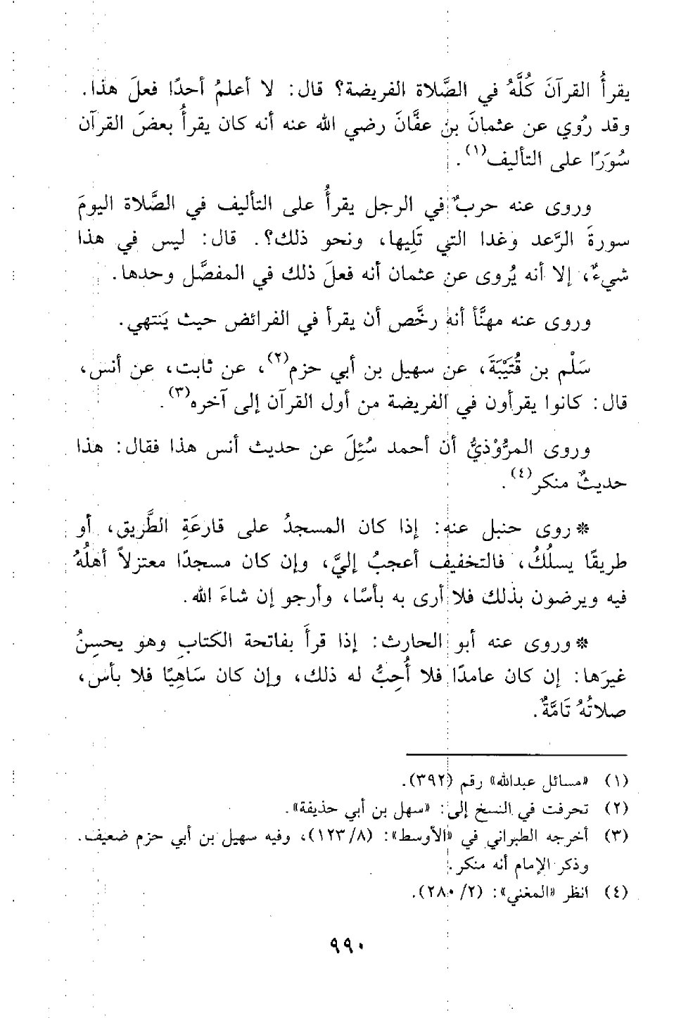 سأل ابن قتيبة عن سهل بن أبي حذيفة عن ثابت عن أنس قال كانوا يقرؤون في الفريضة من أول القرآن إلى آخره // ضعيف //
