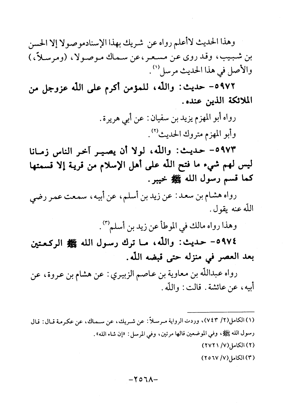 5974 - حَدِيث: وَالله، مَا ترك رَسُول الله - صلى الله عَلَيْهِ وَسلم - الرَّكْعَتَيْنِ بعد الْعَصْر فِي منزله حَتَّى قَبْضَة الله رَوَاهُ عبد الله بن مُعَاوِيَة بن عَاصِم الزبيرِي: عَن هِشَام بن عُرْوَة، عَن أَبِيه، عَن عَائِشَة. قلت: وَالله.