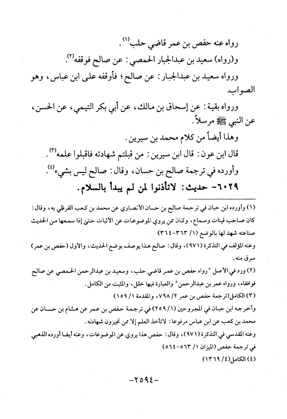 6029 - حَدِيث: لَا تأذنوا لمن لم يبْدَأ بِالسَّلَامِ