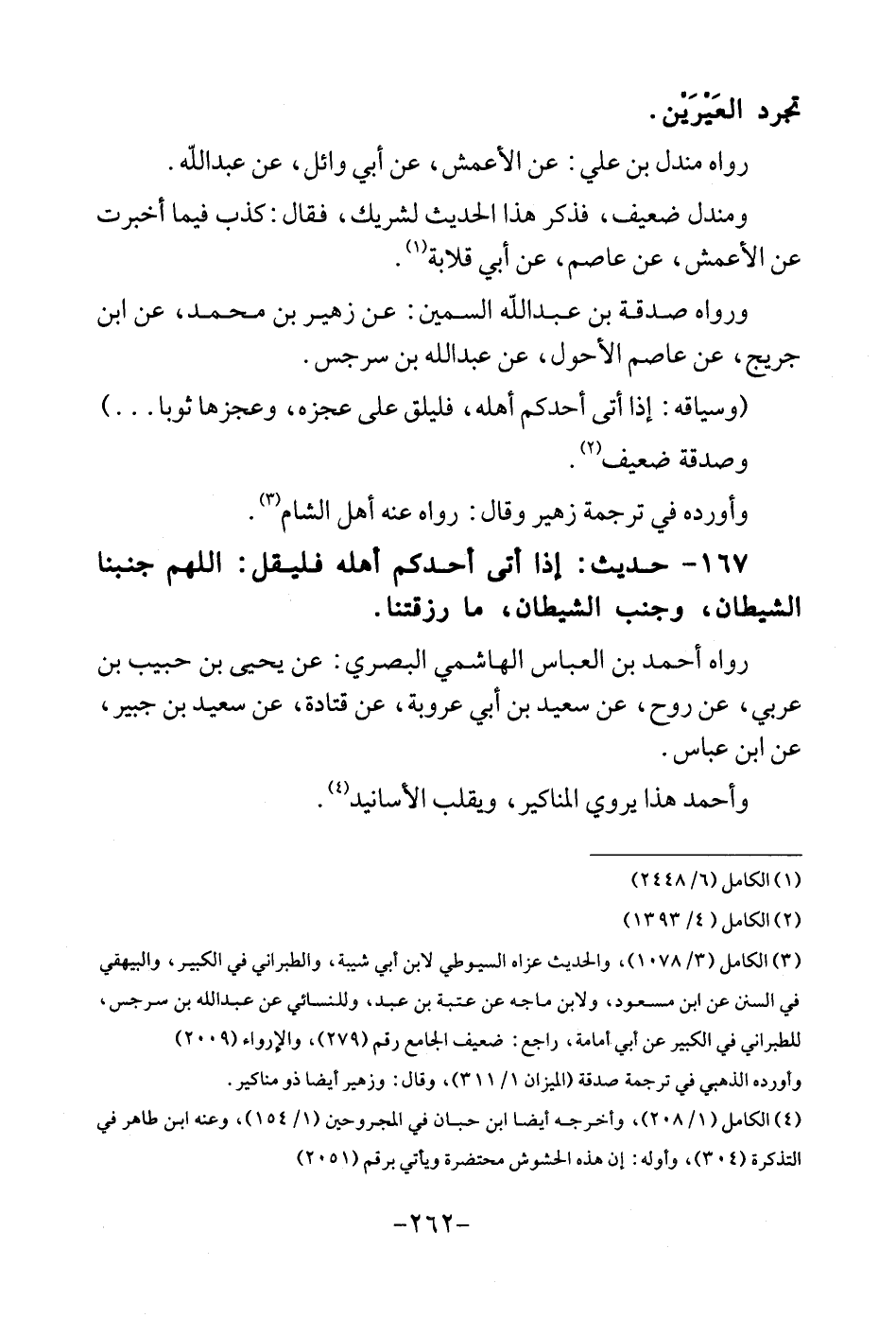 167 - حَدِيث: إِذا اتى أحدكُم أَهله فَلْيقل: اللَّهُمَّ جنبا الشَّيْطَان، وجنب الشَّيْطَان، مَا رزقتنا. رَوَاهُ أَحْمد بن الْعَبَّاس الْهَاشِمِي الْبَصْرِيّ: عَن يحيى بن حبيب بن عَرَبِيّ، عَن روح، عَن سعيد بن أبي عرُوبَة، عَن قَتَادَة، عَن سعيد بن جُبَير، عَن أبن عَبَّاس. وَأحمد هَذَا يرْوى الْمَنَاكِير، ويقلب الْأَسَانِيد.