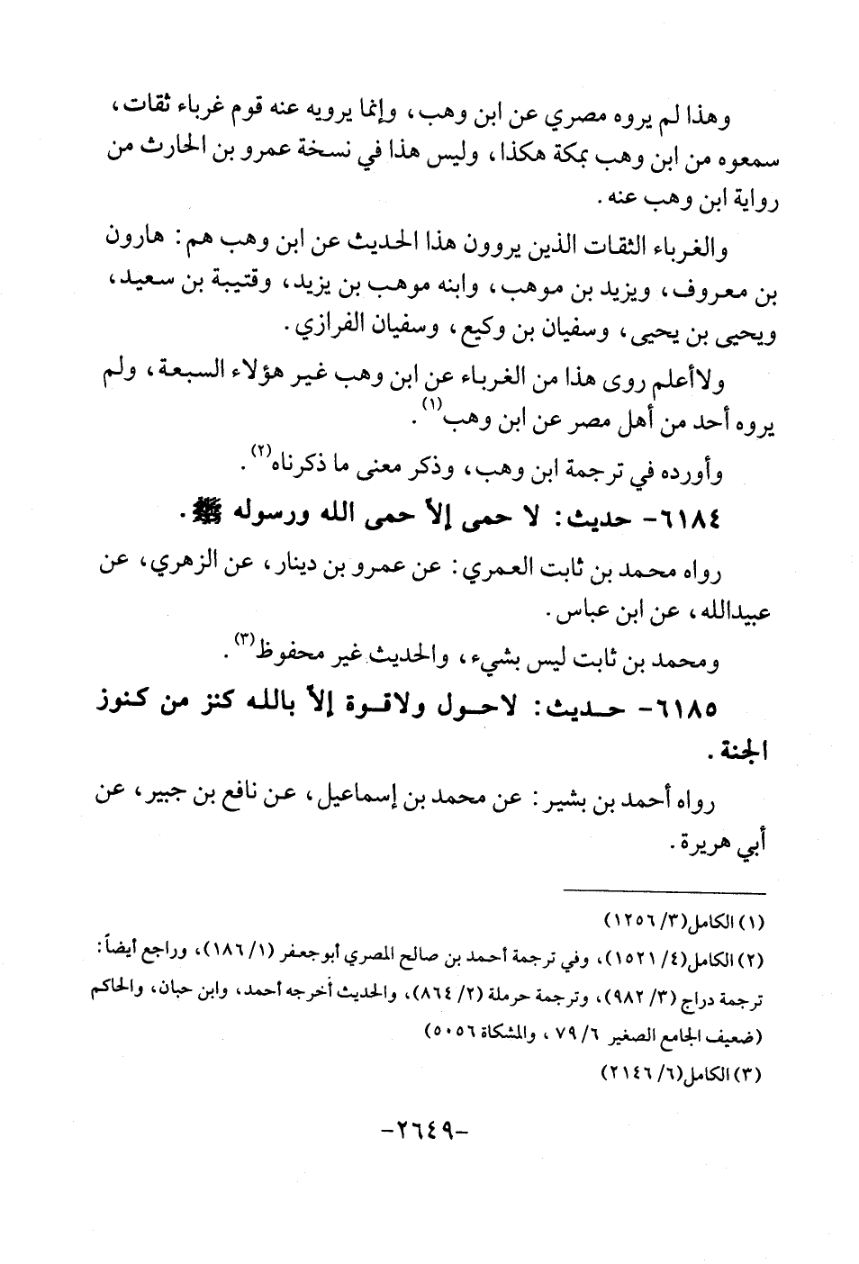 6185 - حَدِيث: لَا حول وَلَا قُوَّة إِلَّا بِاللَّه كنز من كنوز الْجنَّة. رَوَاهُ أَحْمد بن بشير: عَن مُحَمَّد بن إِسْمَاعِيل، عَن نَافِع بن جُبَير، عَن أبي هُرَيْرَة.