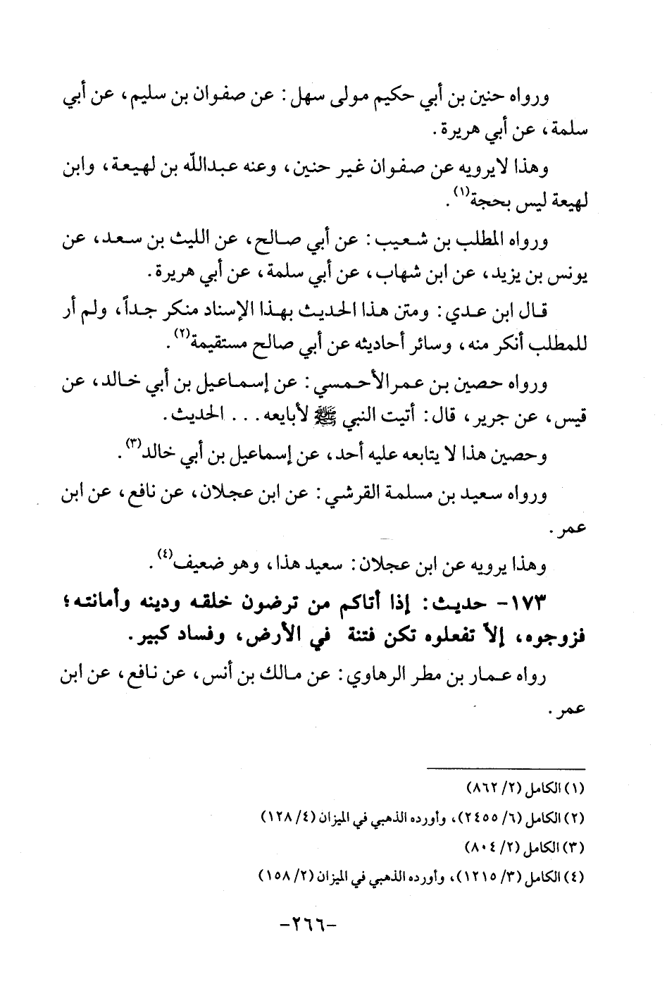 173 - حَدِيث: إِذا أَتَاكُم من ترْضونَ خلقه وَدينه وأمانته؛ فَزَوجُوهُ، الا تفعلوه تكن فتْنَة فِي الأَرْض، وَفَسَاد كَبِير. رَوَاهُ عمار بن مطر الرهاوي: عَن مَالك بن أنس، عَن نَافِع، عَن ابْن عمر.