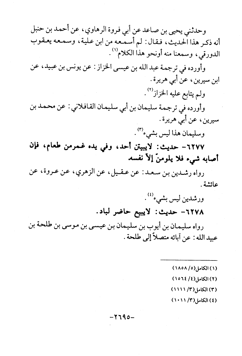 6278 - حَدِيث: لَا يَبِيع حَاضر لباد. رَوَاهُ سُلَيْمَان بن ايوب بن سُلَيْمَان بن عِيسَى بن مُوسَى بن طَلْحَة بن عبيد الله: عَن آبَائِهِ مُتَّصِلا إِلَى طَلْحَة.