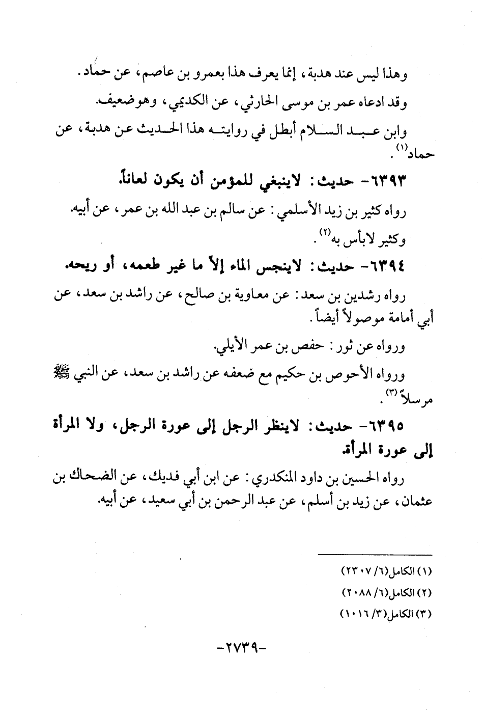 وَهَذَا لَيْسَ عِنْد هدبة، إِنَّمَا يعرف هَذَا بِعَمْرو بن عَاصِم، عَن حَمَّاد. وَقد ادَّعَاهُ عمر بن مُوسَى الْحَارِثِيّ، عَن الْكُدَيْمِي، وهوضعيف. وَابْن عبد السَّلَام أبطل فِي رِوَايَته هَذَا الحَدِيث عَن هدبة، عَن حَمَّاد.