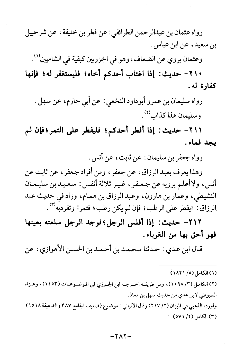 212 - حَدِيث: اذا أفلس الرجل؛ فَوجدَ الرجل سلْعَته بِعَينهَا فهوأحق بهَا من الغرباء. قَالَ ابْن عدي: حَدثنَا مُحَمَّد بن أَحْمد بن الْحسن الْأَهْوَازِي، عَن