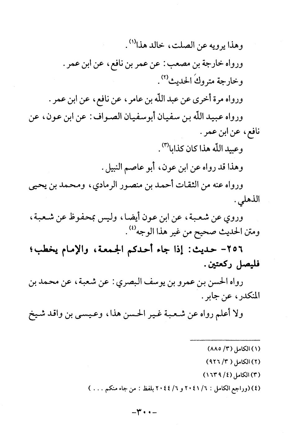 256 - حَدِيث: إِذا جَاءَ أحدكُم الْجُمُعَة، وَالْإِمَام يخْطب؛ فَليصل رَكْعَتَيْنِ. رَوَاهُ الْحسن بن عَمْرو بن يُوسُف الْبَصْرِيّ: عَن شُعْبَة، عَن مُحَمَّد بن الْمُنْكَدر، عَن جَابر. وَلَا أعلم رَوَاهُ عَن شُعْبَة غير الْحسن هَذَا، وَعِيسَى بن وَاقد شيخ
