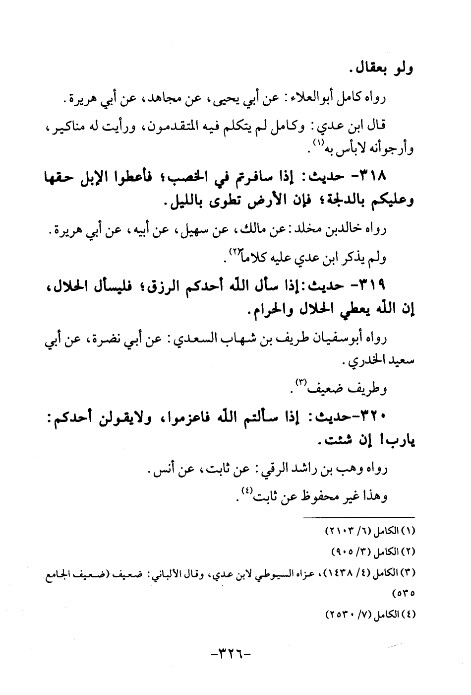 318 - حَدِيث: إِذا سافرتم فِي الخصب؛ فأعطوا الْإِبِل حَقّهَا وَعَلَيْكُم بالدلجة؛ فَإِن الأَرْض تطوى بِاللَّيْلِ. رَوَاهُ خَالِد بن مخلد: عَن مَالك، عَن سُهَيْل، عَن أَبِيه، عَن أبي هُرَيْرَة. وَلم يذكر ابْن عدي عَلَيْهِ كلَاما.