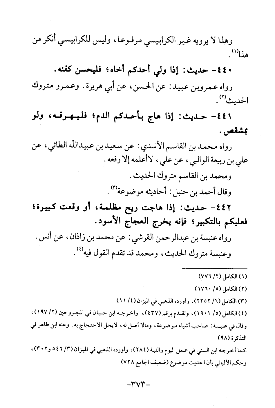 440 - حَدِيث: اذا ولي أحدكُم أَخَاهُ؛ فليحسن كَفنه. رَوَاهُ عمروبن عبيد: عَن الْحسن، عَن أبي هُرَيْرَة. وَعَمْرو مَتْرُوك الحَدِيث.