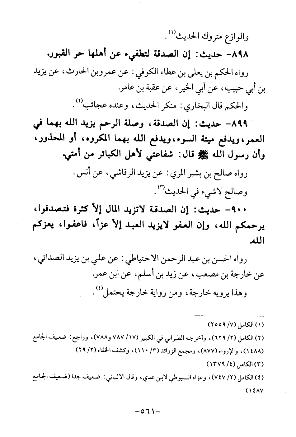 898 - حَدِيث: إِن الصَّدَقَة لتطفيء عَن أَهلهَا حر الْقُبُور. رَوَاهُ الحكم بن يعلى بن عَطاء الْكُوفِي: عَن عَمْرو بن الْحَارِث، عَن يزِيد بن أبي حبيب، عَن أبي الْخَيْر، عَن عقبَة بن عَامر. وَالْحكم قَالَ البُخَارِيّ: مُنكر الحَدِيث، وَعِنْده عجائب.
