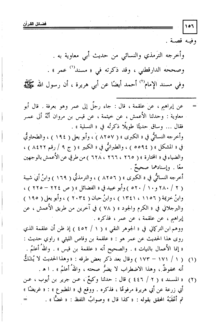 = عن إبراهيم، عن علقمة، قال: جاء رجل إلى عمر وهو بعرفة, قال أبو معاوية: وحدَّثَنا الأعمش، عن خيثمة، عن قيس بن مروان أنه أتى عمر فقال ... وساق حديثًا طويلًا ذكرته في "التسلية".