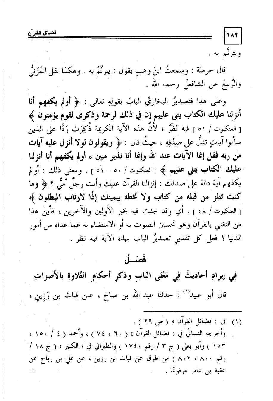 قال حرملة: وسمعت ابن وهب يقول: يترنَّمُ به, وهكذا نقل المزنى والربيع عن الشافعى -رحمه الله.