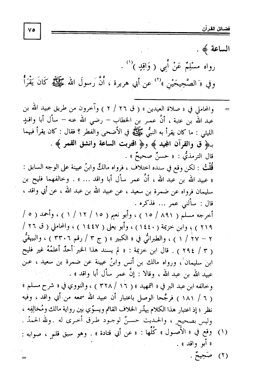 أخرجه مسلم "891/ 15"، وأبو نعيم "15/ 12/ 1"، وأحمد "5/ 219"، وابن خزيمة "1440"، وأبو يعلى "1447"، والمحاملي "ق26/ 2-27/ 1"، والطبراني في "الكبير" "ج3/ رقم 3306"، والبيهقي "3/ 294". قال ابن خزيمة: "لم يسند هذا الخبر أحد أعلمه غير فليح بن سليمان، ورواه مالك بن أنس وابن عيينة عن ضمرة بن سعيد، عن عبيد الله بن عبد الله، وقالا: إن عمر سأل أبا واقد".