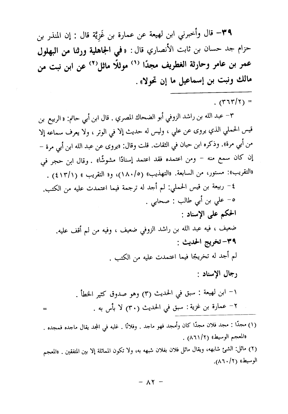 ٣٩ - وَأَخْبَرَنِي ابْنُ لَهِيعَةَ، عَنْ عُمَارَةَ بْنِ غَزِيَّةَ، قَالَ: إِنَّ الْمُنْذِرَ بْنَ حِزَامٍ، جَدُّ حَسَّانَ بْنِ ثَابِتٍ الْأَنْصَارِيِّ قَالَ: " فِي الْجَاهِلِيَّةِ: