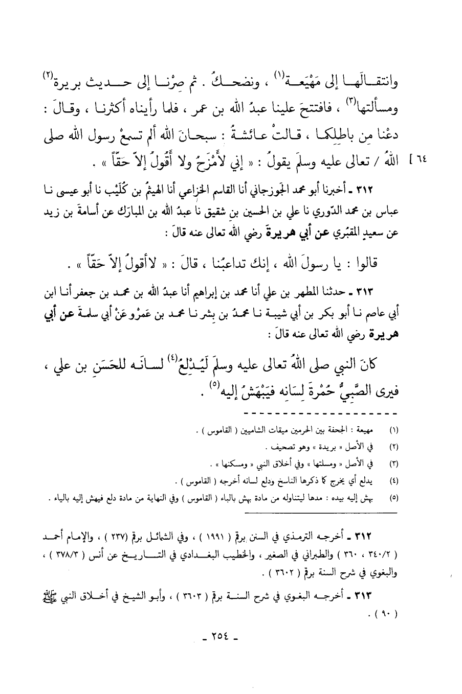 312 - أَخْبَرَنَا أَبُو مُحَمَّدٍ الْجُوزَجَانِيُّ أَنَا الْقَاسِمُ الْخُزَاعِيُّ أَنَا الْهَيْثَمُ بْنُ كُلَيْبٍ نا أَبُو عِيسَى نا عَبَّاسُ بْنُ مُحَمَّدٍ الدُّورِيُّ نا عَلِيُّ بْنُ الْحُسَيْنِ بْنِ شَقِيقٍ نا عَبْدُ اللَّهِ بْنُ الْمُبَارَكِ عَنْ أُسَامَةَ بْنِ زَيْدٍ عَنْ سَعِيدٍ الْمَقْبُرِيِّ عَنْ أَبِي هُرَيْرَةَ رَضِيَ اللَّهُ تَعَالَى عَنْهُ قَالَ قَالُوا يَا رَسُولَ اللَّهِ إِنَّكَ تُدَاعِبُنَا قَالَ لا أَقُولُ إِلا حَقًّا.