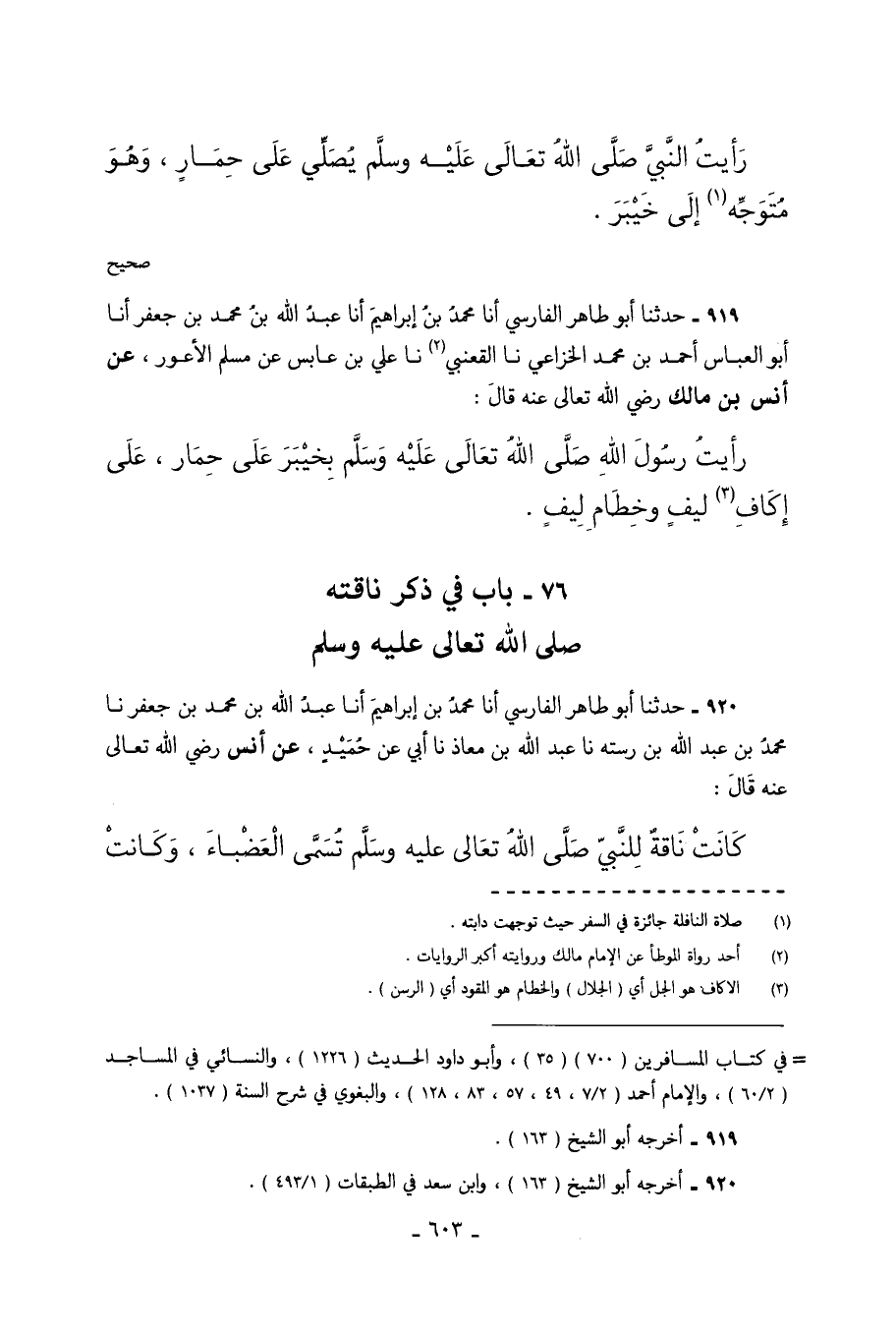 76- بَابٌ فِي ذِكْرِ نَاقَتِهِ صَلَّى اللَّهُ تَعَالَى عَلَيْهِ وَسَلَّمَ