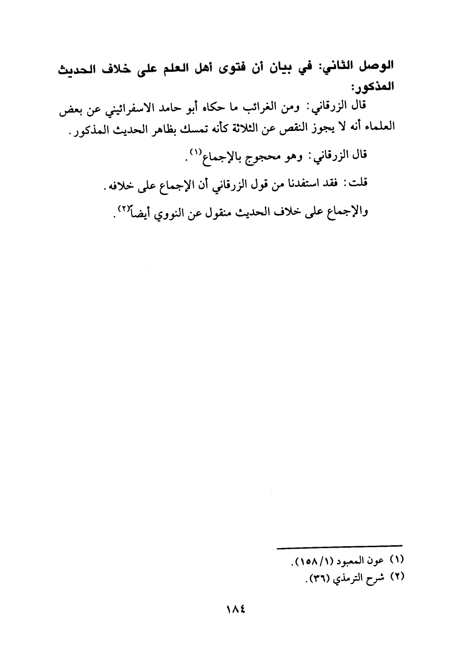 الوصل الثاني: في بيان أن فتوى أهل العلم على خلاف الحديث المذكور: