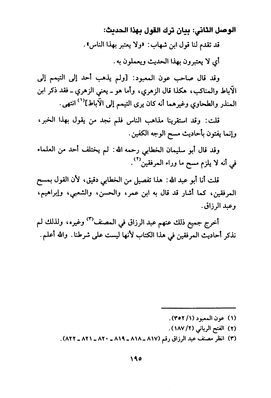 قلت أنا أبو عبد الله: هذا تفصيل من الخطابي دقيق، لأن القول بمسح المرفقين، كما أشار قد قال به ابن عمر، والحسن، والشعبي، وإبراهيم، وعبد الرزاق.
