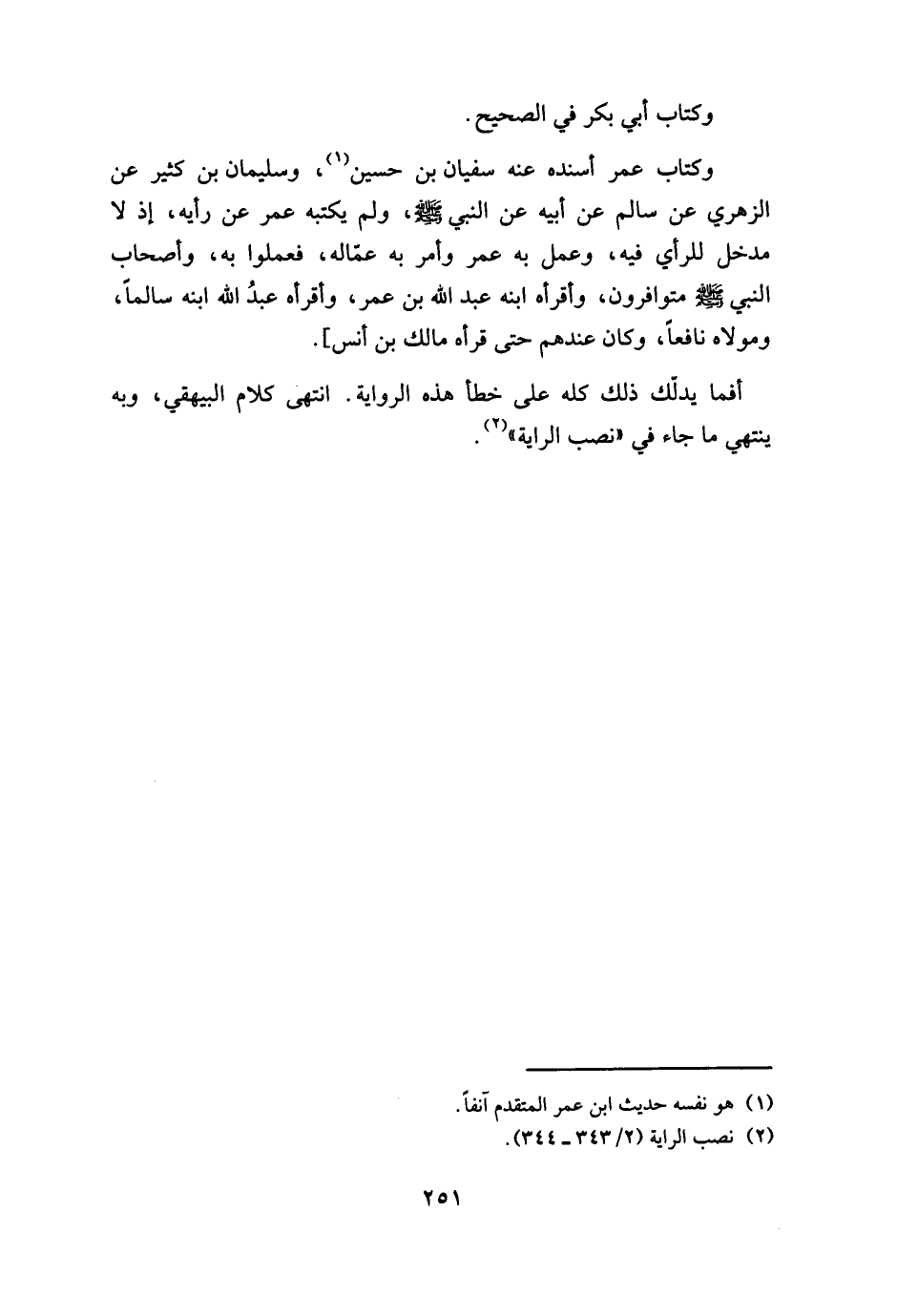 أفما يدلك ذلك كله على خطأ هذه الرواية. انتهى كلام البيهقي، وبه ينتهي ما جاء في " نصب الراية ".