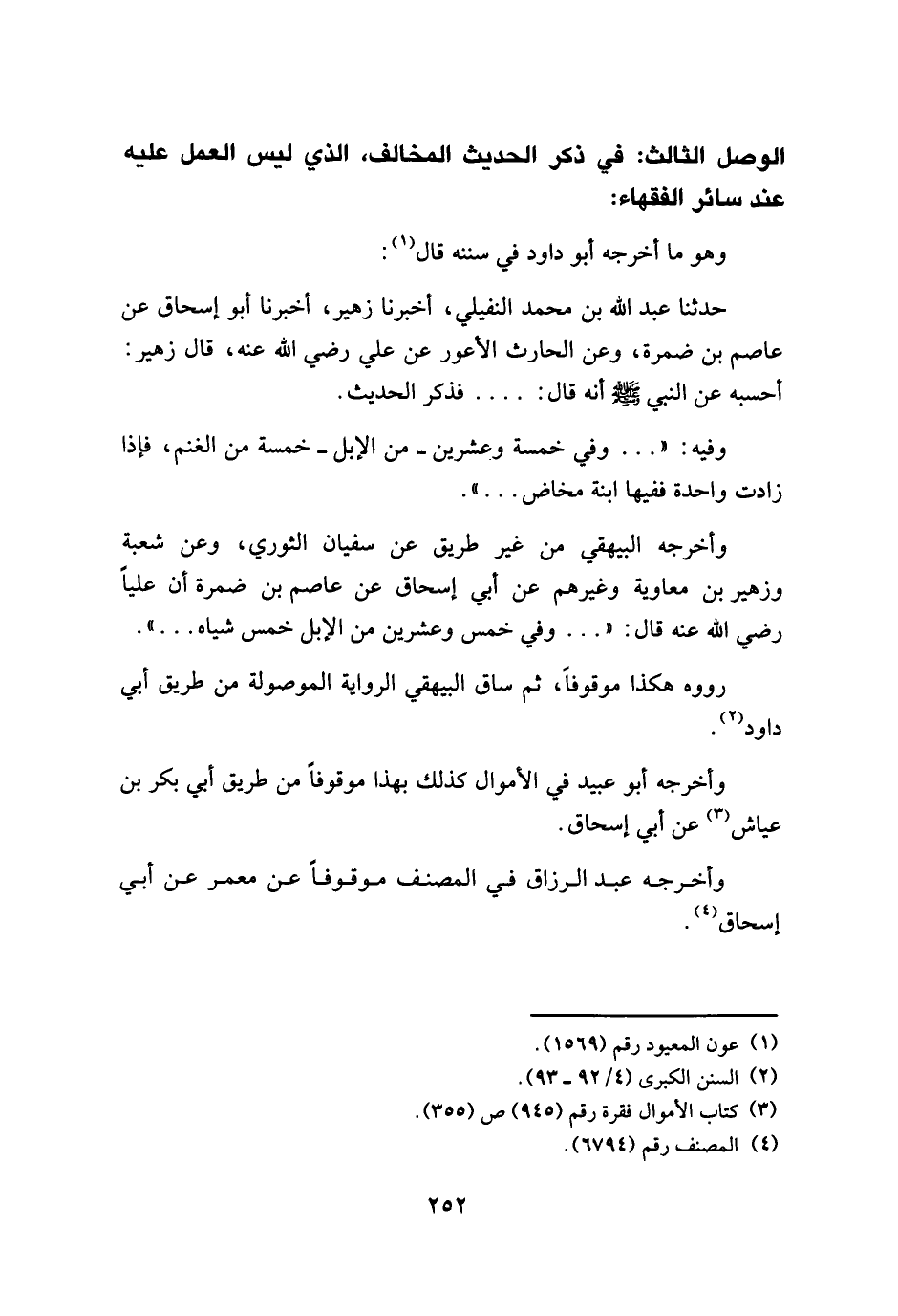 الوصل الثالث: في ذكر الحديث المخالف، الذي ليس العمل عليه عند سائر الفقهاء: