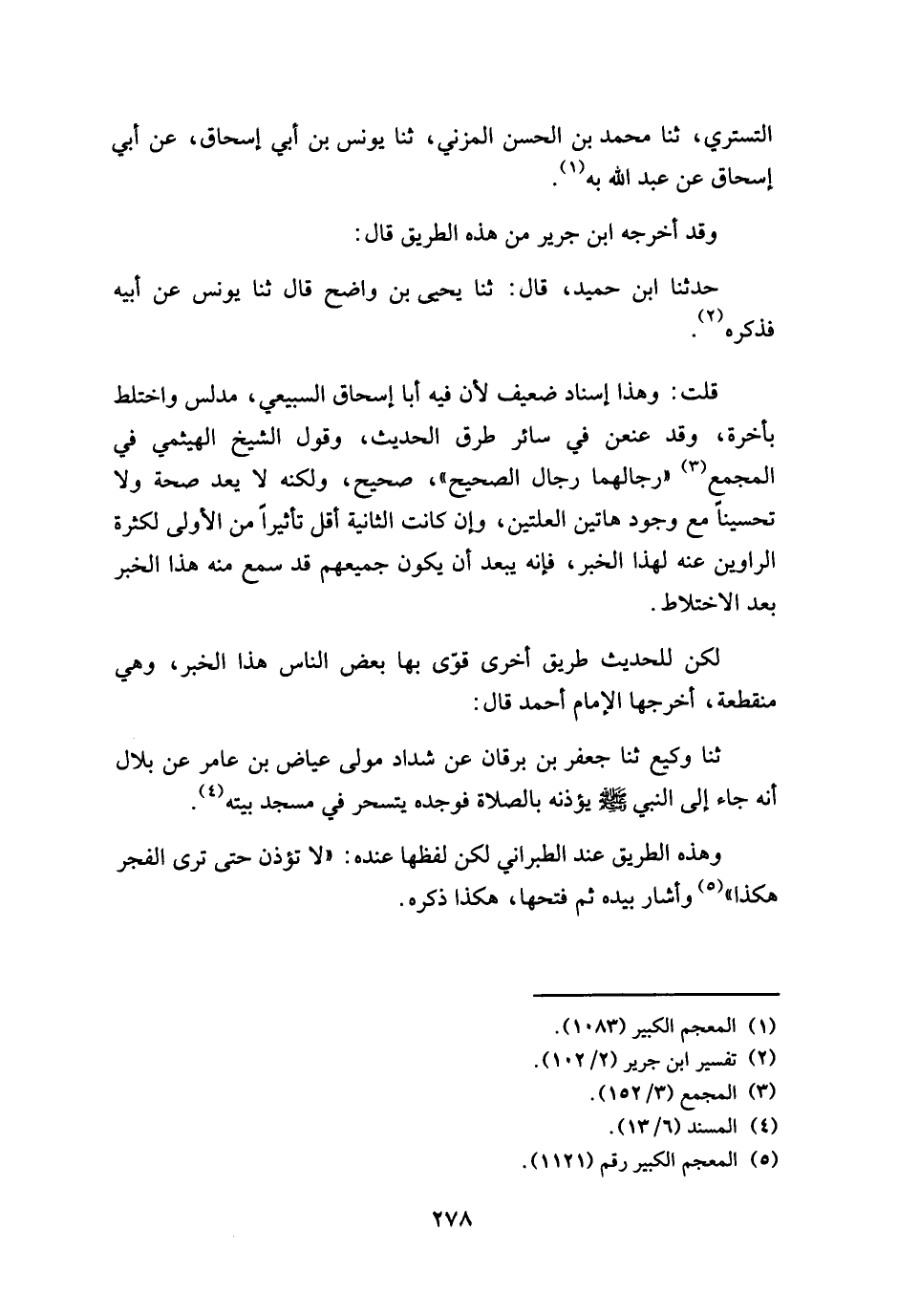 قلت: وهذا إسناد ضعيف لأن فيه أبا إسحاق السبيعي، مدلس واختلط بأخرة، وقد عنعن في سائر طرق الحديث، وقول الشيخ الهيثمي في المجمع " رجالهما رجال الصحيح "، صحيح، ولكنه لا يعد صحة ولا تحسيناً مع وجود هاتين العلتين، وإن كانت الثانية أقل تأثيراً من الأولى لكثرة الراوين عنه لهذا الخبر، فإنه يبعد أن يكون جميعهم قد سمع منه هذا الخبر بعد الاختلاط.