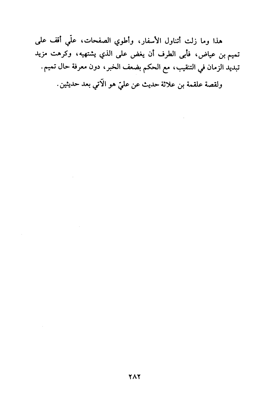 هذا وما زلت أتناول الأسفار، وأطوي الصفحات، علّي أقف على تميم بن عياض، فأبى الطرف أن يغض على الذي يشتهيه، وكرهت مزيد تبديد الزمان في التنقيب، مع الحكم بضعف الخبر، دون معرفة حال تميم.