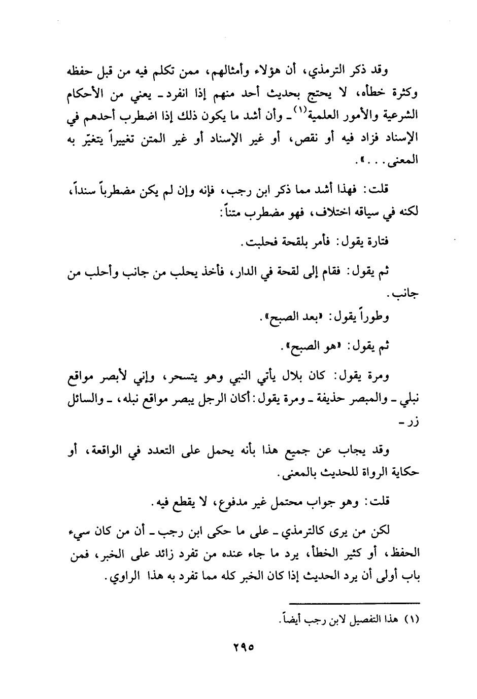وقد ذكر الترمذي، أن هؤلاء وأمثالهم، ممن تكلم فيه من قبل حفظه وكثرة خطأه، لا يحتج بحديث أحد منهم إذا انفرد - يعني من الأحكام الشرعية والأمور العلمية - وأن أشد ما يكون ذلك إذا اضطرب أحدهم في الإسناد فزاد فيه أو نقص، أو غيَّر الإسناد أو غيَّر المتن تغييراً يتغتر به المعنى. . . ".
