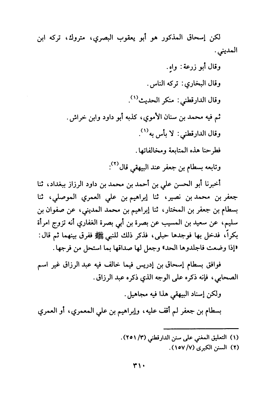 لكن إسحاق المذكور هو أبو يعقوب البصري، متروك، تركه ابن المديني.