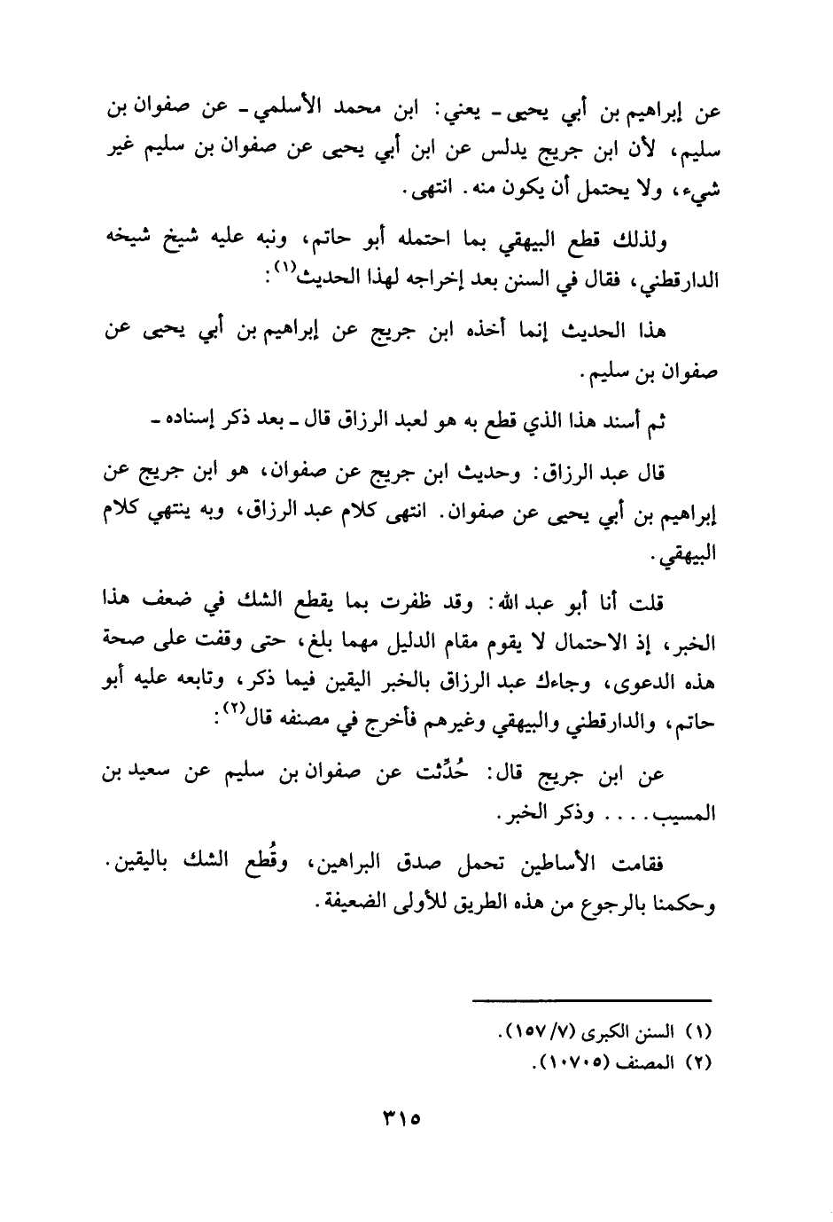 ولذلك قطع البيهقي بما احتمله أبو حاتم، ونبه عليه شيخ شيخه الدارقطني، فقال في السنن بعد إخراجه لهذا الحديث: هذا الحديث إنما أخذه ابن جريج عن إبراهيم بن أبي يحيى عن صفوان بن سليم.