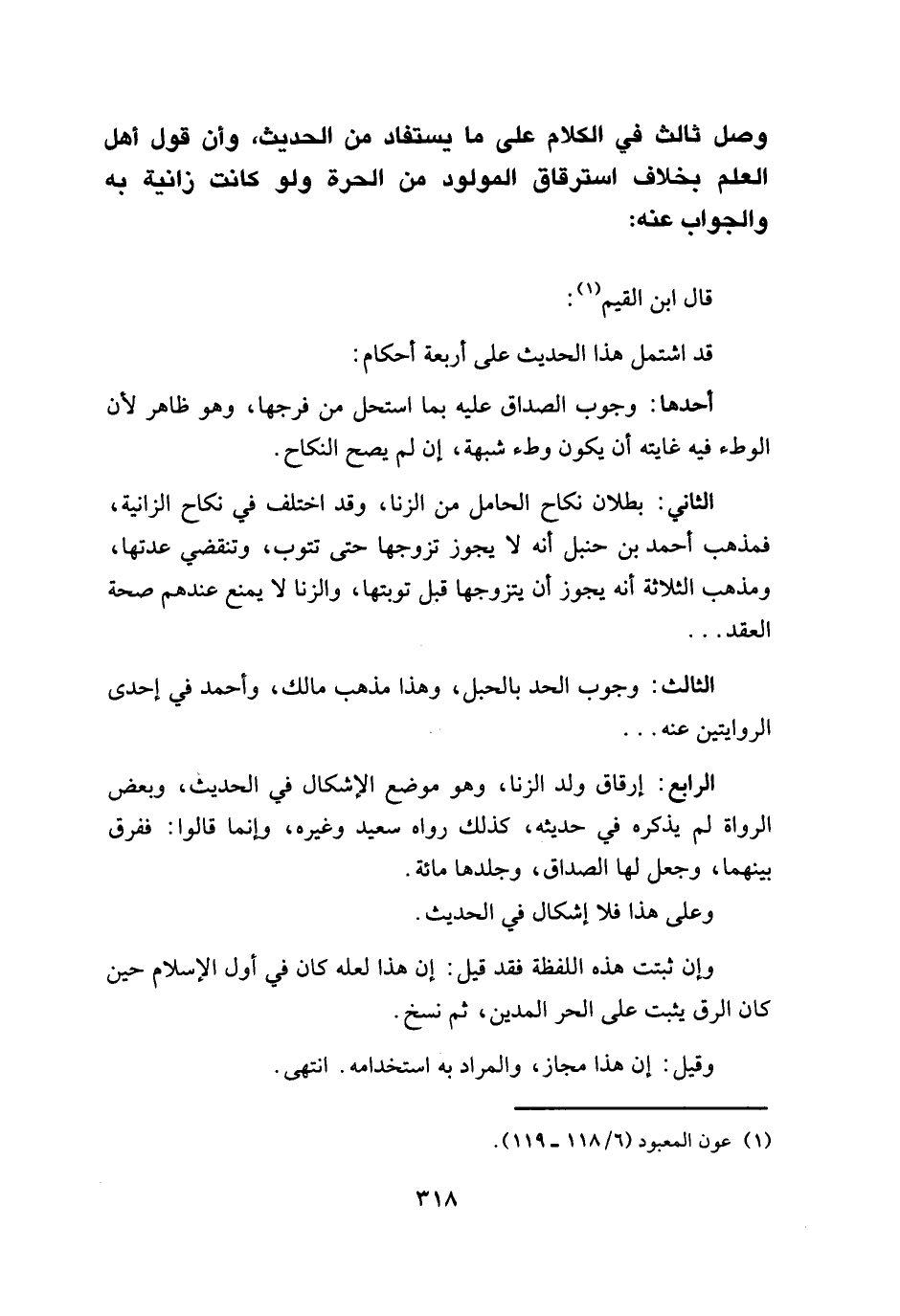 وصل ثالث في الكلام على ما يستفاد من الحديث، وأن قول أهل العلم بخلاف استرقاق المولود من الحرة ولو كانت زانية به والجواب عنه: