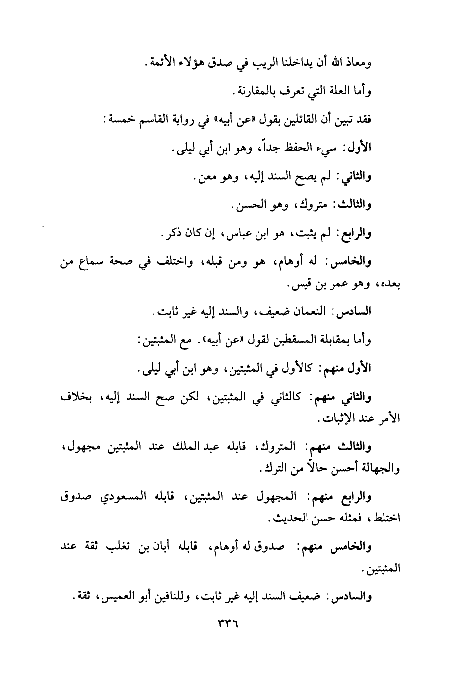 والخامس منهم: صدوق له أوهام، قابله أبان بن تغلب ثقة عند المثبتين.