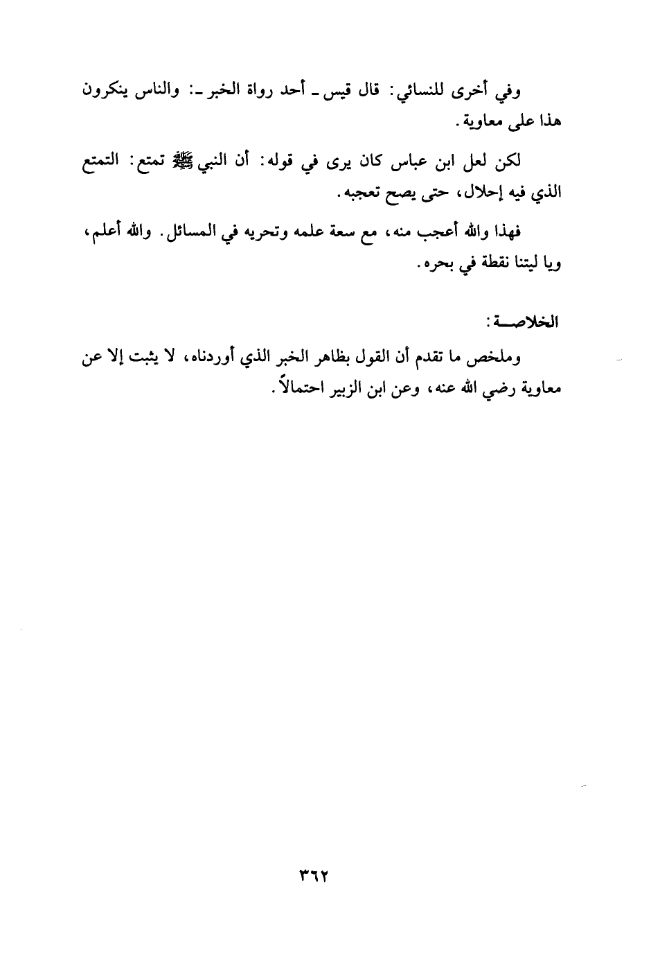 وملخص ما تقدم أن القول بظاهر الخبر الذي أوردناه، لا يثبت إلا عن معاوية رضي الله عنه، وعن ابن الزبير احتمالاً.