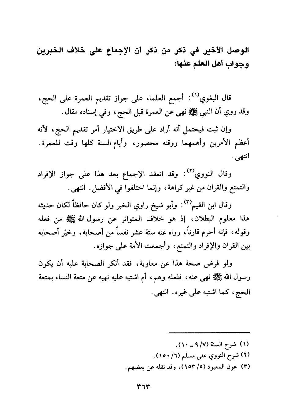 وقال النووي: وقد انعقد الإجماع بعد هذا على جواز الإفراد والتمتع والقران من غير كراهة، وإنما اختلفوا في الأفضل. انتهى.