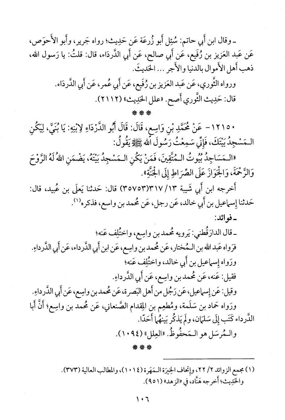 ورواه حماد بن سلمة، ومطعم بن المقدام الصَّنْعاني، عن محمد بن واسع؛ أن أبا الدرداء كتب إلى سلمان، ولم يذكر بينهما أحدا.