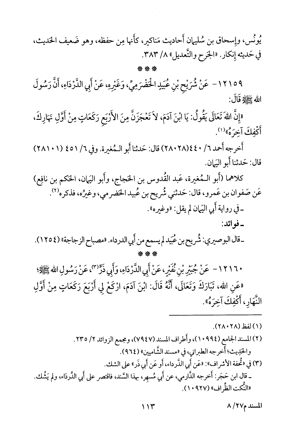 «عن الله، تبارك وتعالى، أنه قال: ابن آدم، اركع لي أربع ركعات من أول النهار، أكفك آخره»