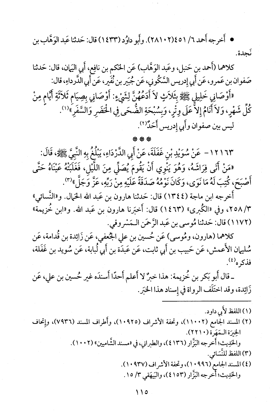 كلاهما (هارون، وموسى) عن حسين بن علي الجعفي، عن زائدة بن قُدَامة، عن سليمان الأعمش، عن حبيب بن أبي ثابت، عن عبدة بن أبي لبابة، عن سويد بن غفلة، فذكره (¬٢).