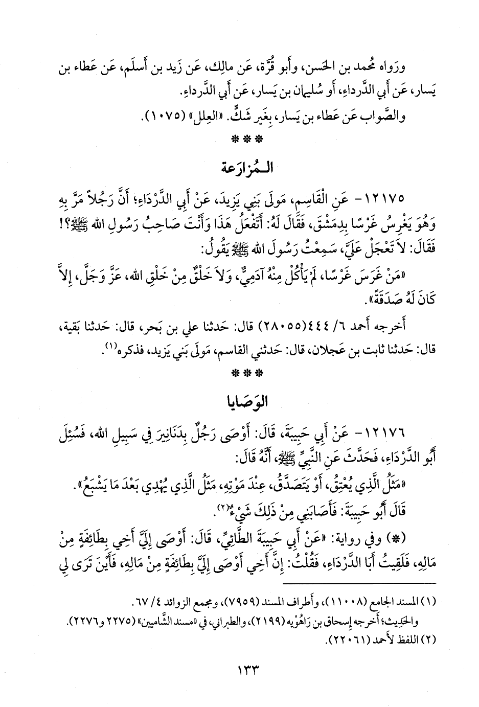 ١٢١٧٦ - عن أبي حَبيبة، قال: أوصى رجل بدنانير في سبيل الله، فسئل أَبو الدرداء، فحدث عن النبي صَلى الله عَليه وسَلم أنه قال: