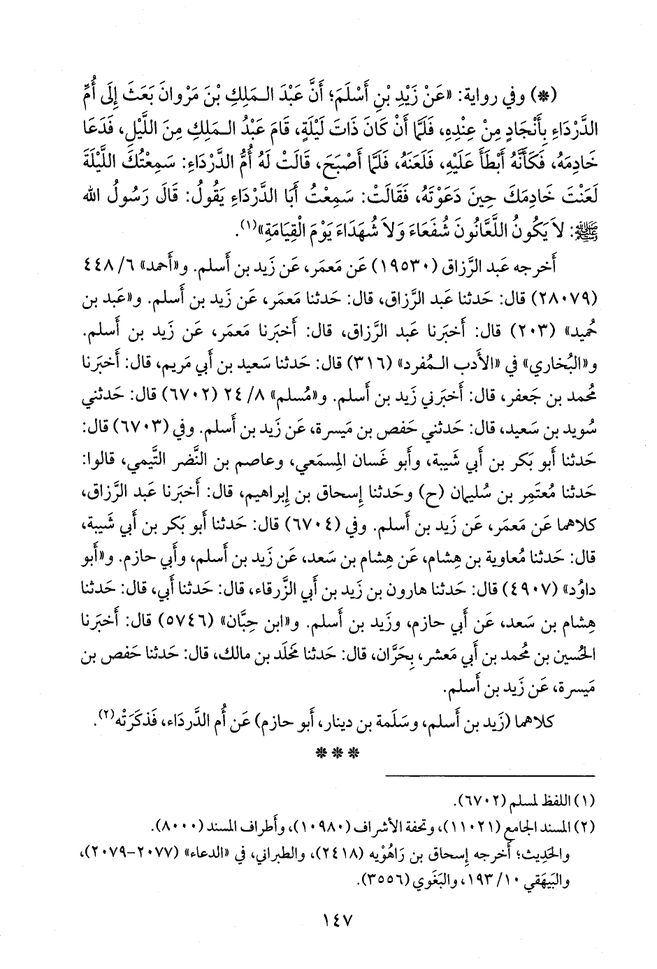 و «البخاري» في «الأدب المفرد» (٣١٦) قال: حدثنا سعيد بن أبي مريم، قال: أخبرنا محمد بن جعفر، قال: أخبرني زيد بن أسلم. و «مسلم» ٨/ ٢٤ (٦٧٠٢) قال: حدثني سويد بن سعيد، قال: حدثني حفص بن ميسرة، عن زيد بن أسلم. وفي (٦٧٠٣) قال: حدثنا أَبو بكر بن أبي شيبة، وأَبو غسان المسمعي، وعاصم بن النضر التيمي، قالوا: حدثنا مُعتَمِر بن سليمان (ح) وحدثنا إسحاق بن إبراهيم، قال: أخبرنا عبد الرزاق، كلاهما عن معمر، عن زيد بن أسلم. وفي (٦٧٠٤) قال: حدثنا أَبو بكر بن أبي شيبة، قال: حدثنا معاوية بن هشام، عن هشام بن سعد، عن زيد بن أسلم، وأبي حازم. و «أَبو داود» (٤٩٠٧) قال: حدثنا هارون بن زيد بن أبي الزرقاء، قال: حدثنا أبي، قال: حدثنا هشام بن سعد، عن أبي حازم، وزيد بن أسلم. و «ابن حِبَّان» (٥٧٤٦) قال: أخبرنا الحسين بن محمد بن أبي معشر، بحران، قال: حدثنا مخلد بن مالك، قال: حدثنا حفص بن ميسرة، عن زيد بن أسلم.