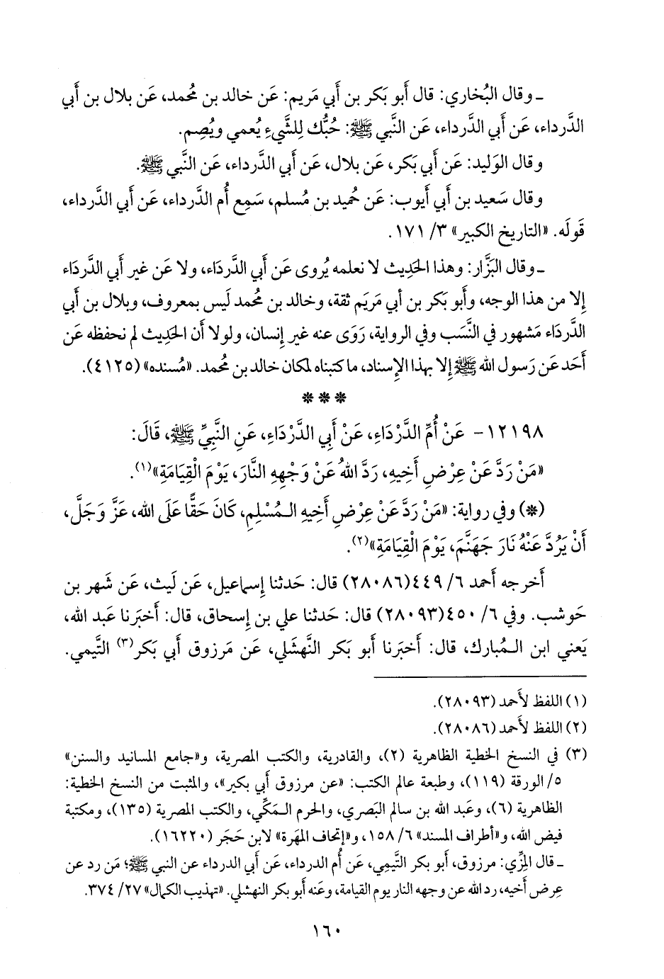 (¬٤) قال المِزِّي: مرزوق، أَبو بكر التيمي، عن أم الدرداء، عن أبي الدرداء عن النبي صَلى الله عَليه وسَلم؛ من رد عن عرض أخيه، رد الله عن وجهه النار يوم القيامة، وعنه أَبو بكر النهشلي، قال المِزِّي: هكذا قال التِّرمِذي والمعروف: مرزوق أَبو بكير التيمي الكوفي، مؤذن التيم. «تهذيب الكمال» ٢٧/ ٣٧٤ و ٣٧٥.