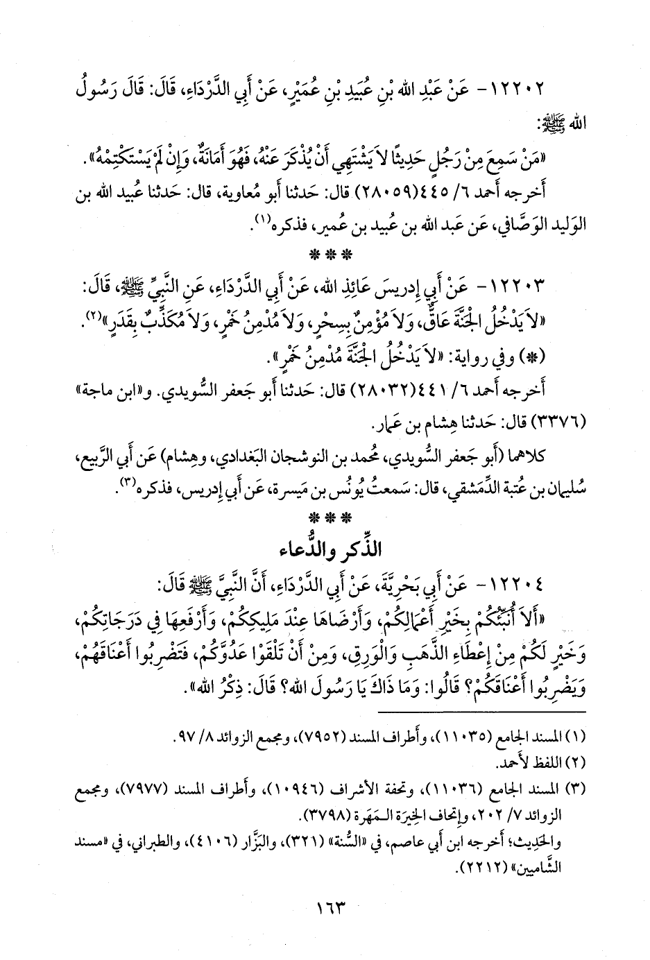 (¬٢) المسند الجامع (١١٠٣٦)، وتحفة الأشراف (١٠٩٤٦)، وأطراف المسند (٧٩٧٧)، ومَجمَع الزوائد ٧/ ٢٠٢، وإتحاف الخِيرَة المَهَرة (٣٧٩٨).