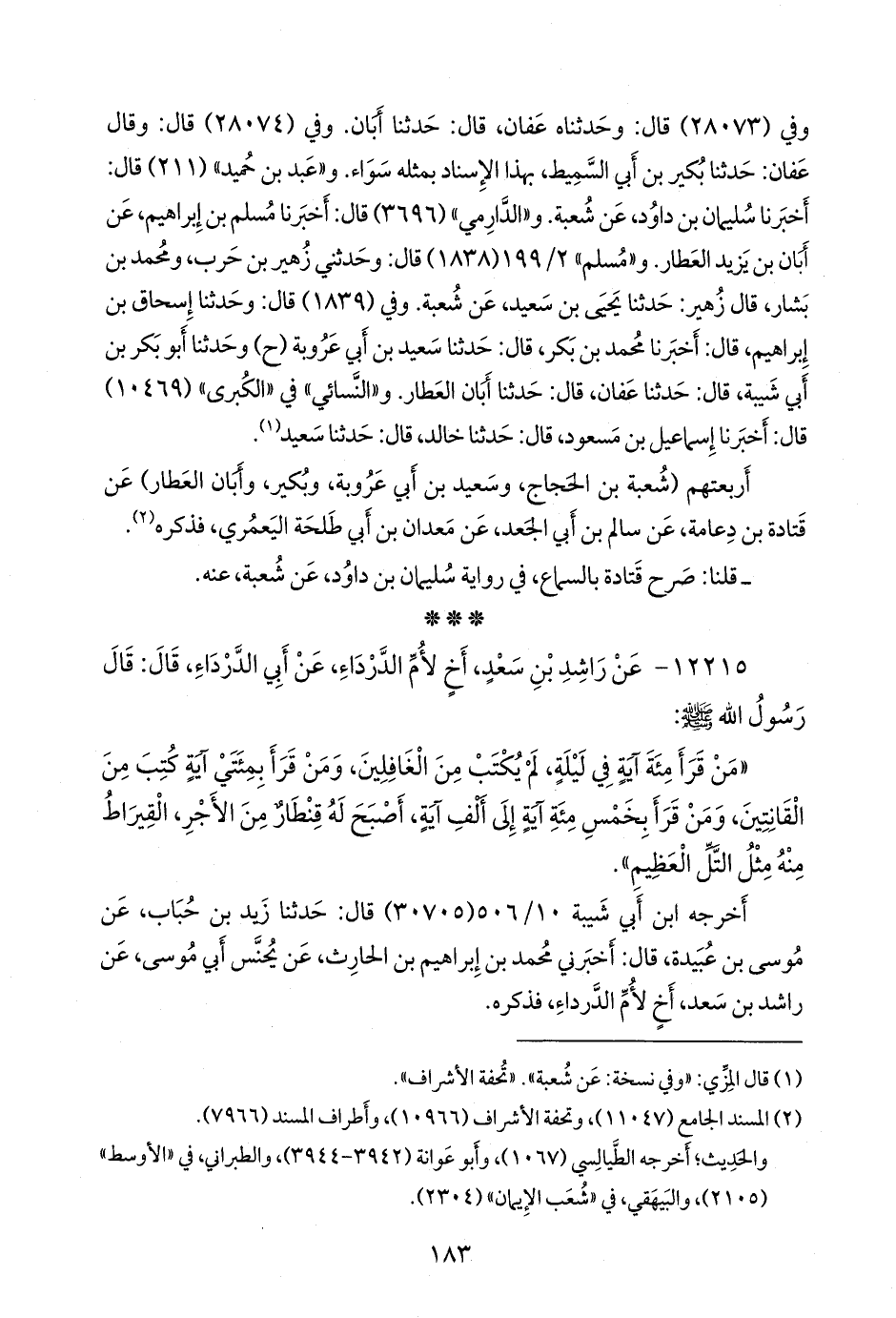 (¬٢) المسند الجامع (١١٠٤٧)، وتحفة الأشراف (١٠٩٦٦)، وأطراف المسند (٧٩٦٦).