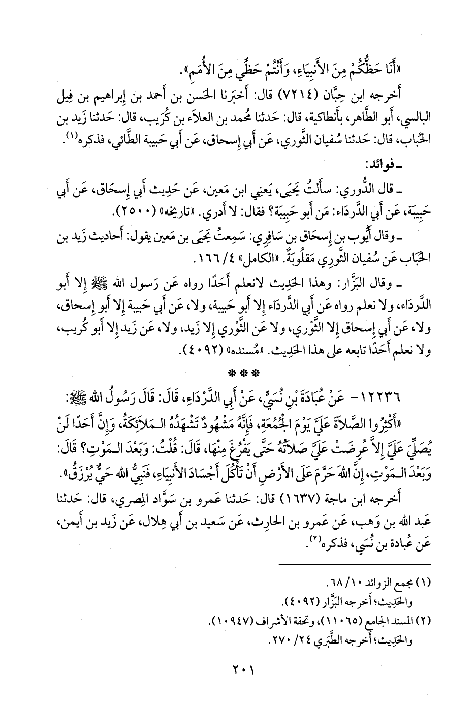- قلنا: إِسناده ضعيفٌ؛ قال عباس الدُّوري: سألت يحيى، يعني ابن مَعين، عن حديث أبي إسحاق، عن أبي حَبيبة، عن أبي الدرداء: من أَبو حبيبة؟ فقال: لا أدري. «تاريخه» (٢٥٠٠).