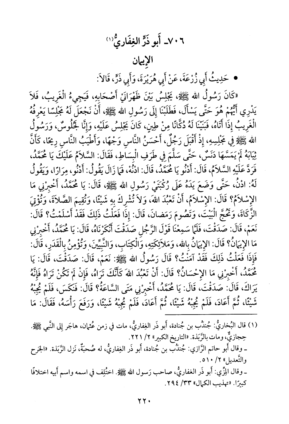 - وقال المِزِّي: أَبو ذر الغِفاري، صاحب رسول الله صَلى الله عَليه وسَلم. اختلف في اسمه واسم أبيه اختلافا كبيرا. «تهذيب الكمال» ٣٣/ ٢٩٤.