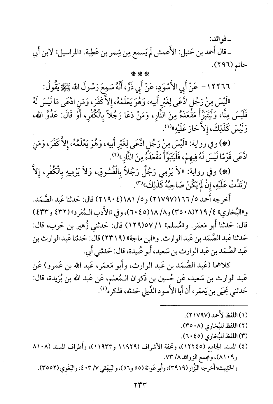 (¬٤) المسند الجامع (١٢٢٤٥)، وتحفة الأشراف (١١٩٢٩ و ١١٩٣٣)، وأطراف المسند (٨١٠٨ و ٨١٠٩)، ومَجمَع الزوائد ٨/ ٧٣.