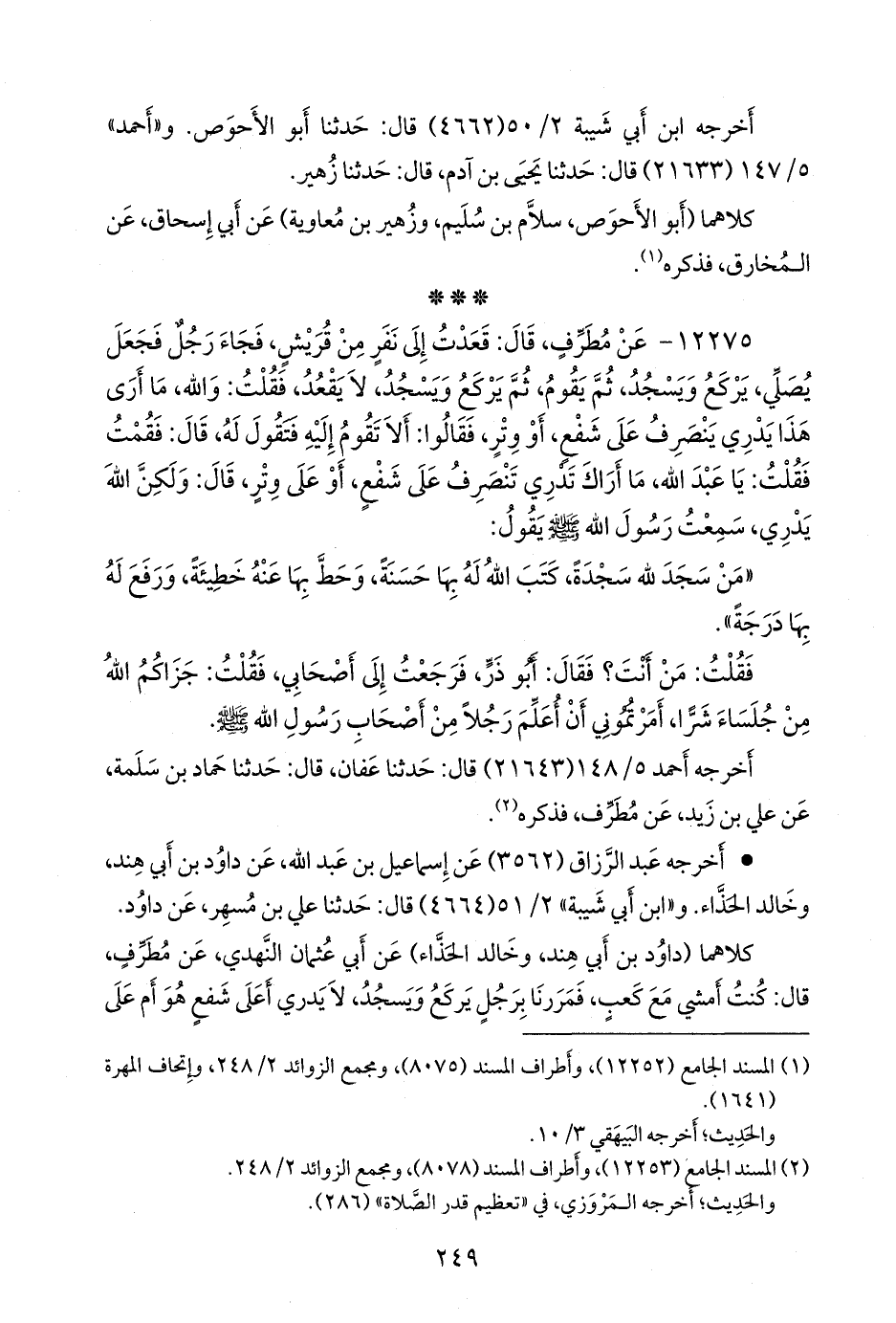 كلاهما (داود بن أبي هند، وخالد الحَذَّاء) عن أبي عثمان النهدي، عن مطرف، قال: كنت أمشي مع كعب، فمررنا برجل يركع ويسجد، لا يدري أعلى شفع هو أم على